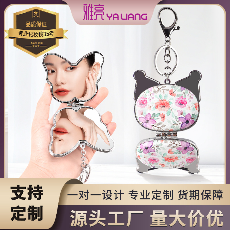 さまざまな形状のハングバッグ、プリンセスミラー、両面プリントレザーミラー、折りたたみミラーハングバッグミラーキーホルダーがすぐに発送可能