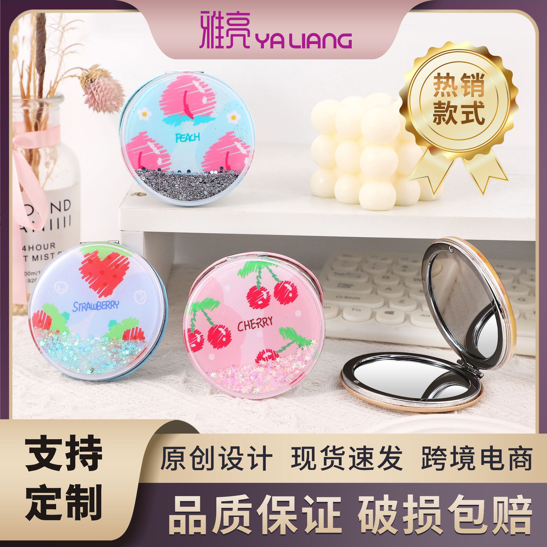 おしゃれでクリエイティブな丸型流砂化粧鏡、流砂入り小型携帯鏡、美容鏡、写真入り