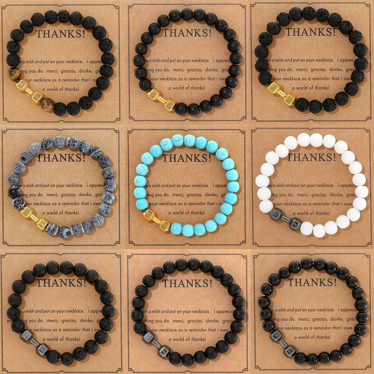 アマゾンの爆発的な個性的なダンベルのアクセサリーの石のブレスレットの天然石の手作りのビーズはカードの祝福の言葉を持っています。