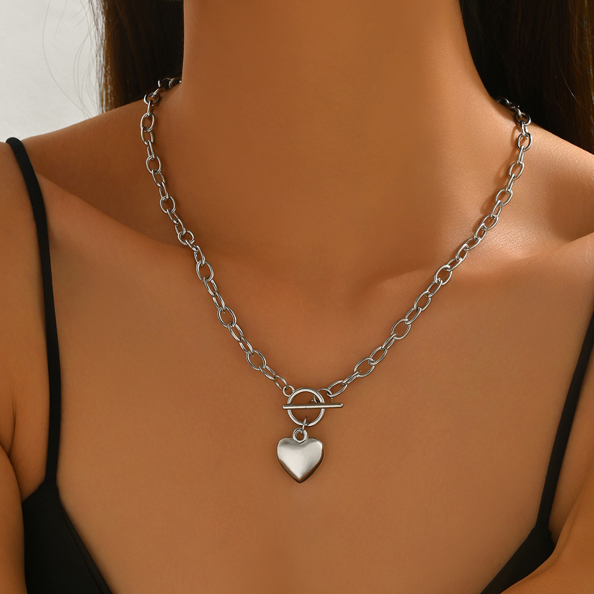 ヨーロッパとアメリカの国境を越えた外国貿易パーソナライズされたトレンディなOTバックルラブペンダントネックレスニッチデザインコールドスタイル鎖骨チェーン