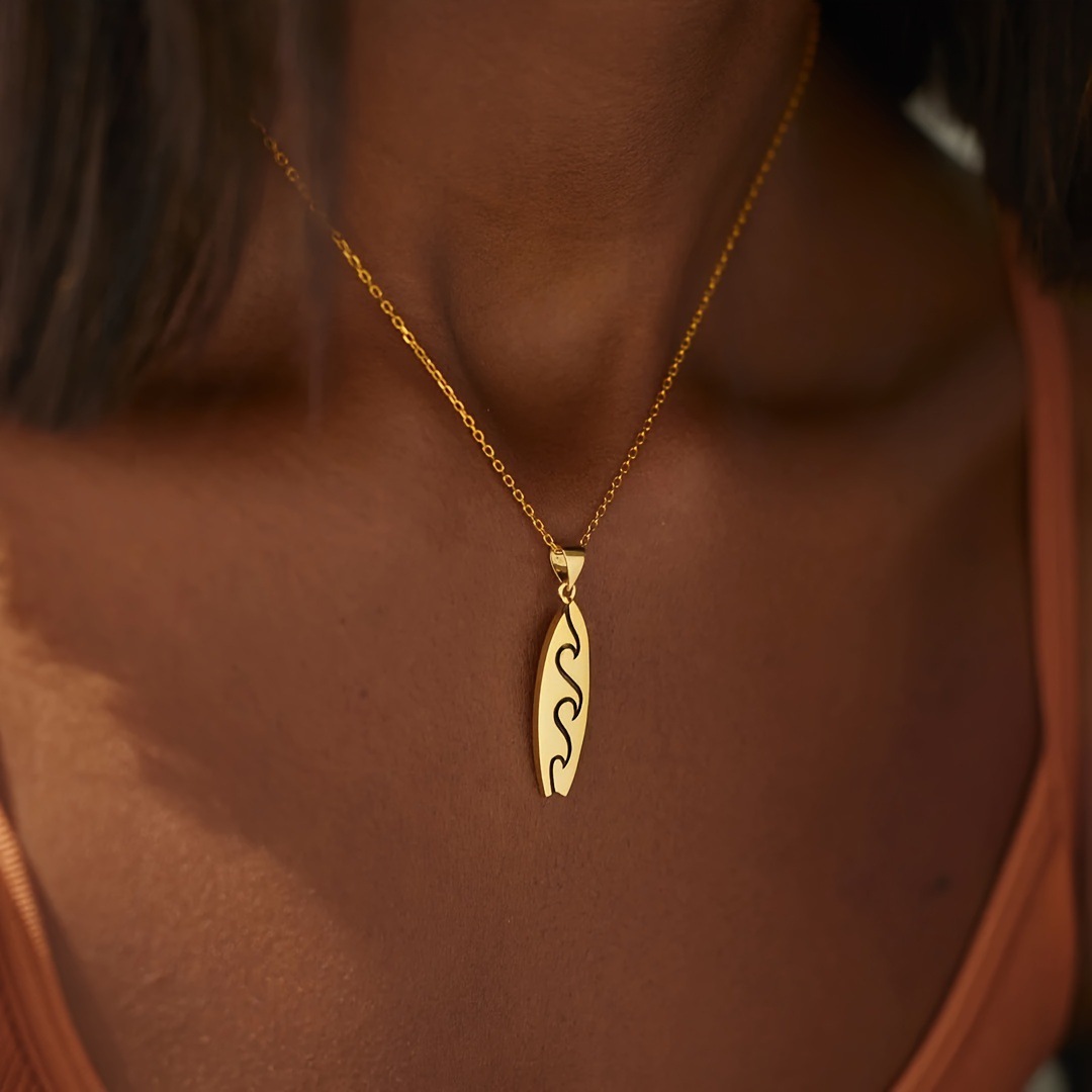 外国貿易クロスボーダーホット販売波彫刻サーフボードペンダントネックレスゴールドネックレス曲線波鎖骨チェーン女性用