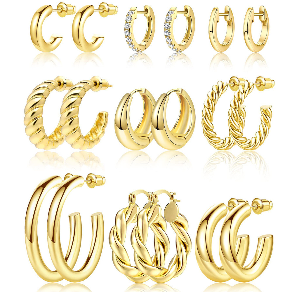 欧米国境を越えて個性的な潮流を提供する円形中空ピアス高級感楕円水滴型イヤリングセット