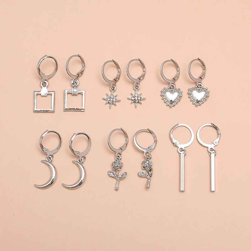 新しい愛のバラの月の耳のボタンのアイデアの個性の長方形の耳のペンダントinsの冷たい風のイヤリングのセットの6件