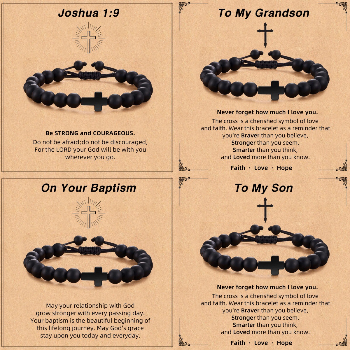 アマゾンの新型のつや消しの黒い数珠の編み縄のブレスレットの虎の目の石の小さい十字のペンダントのチェーンはカードの女性を持ちます。