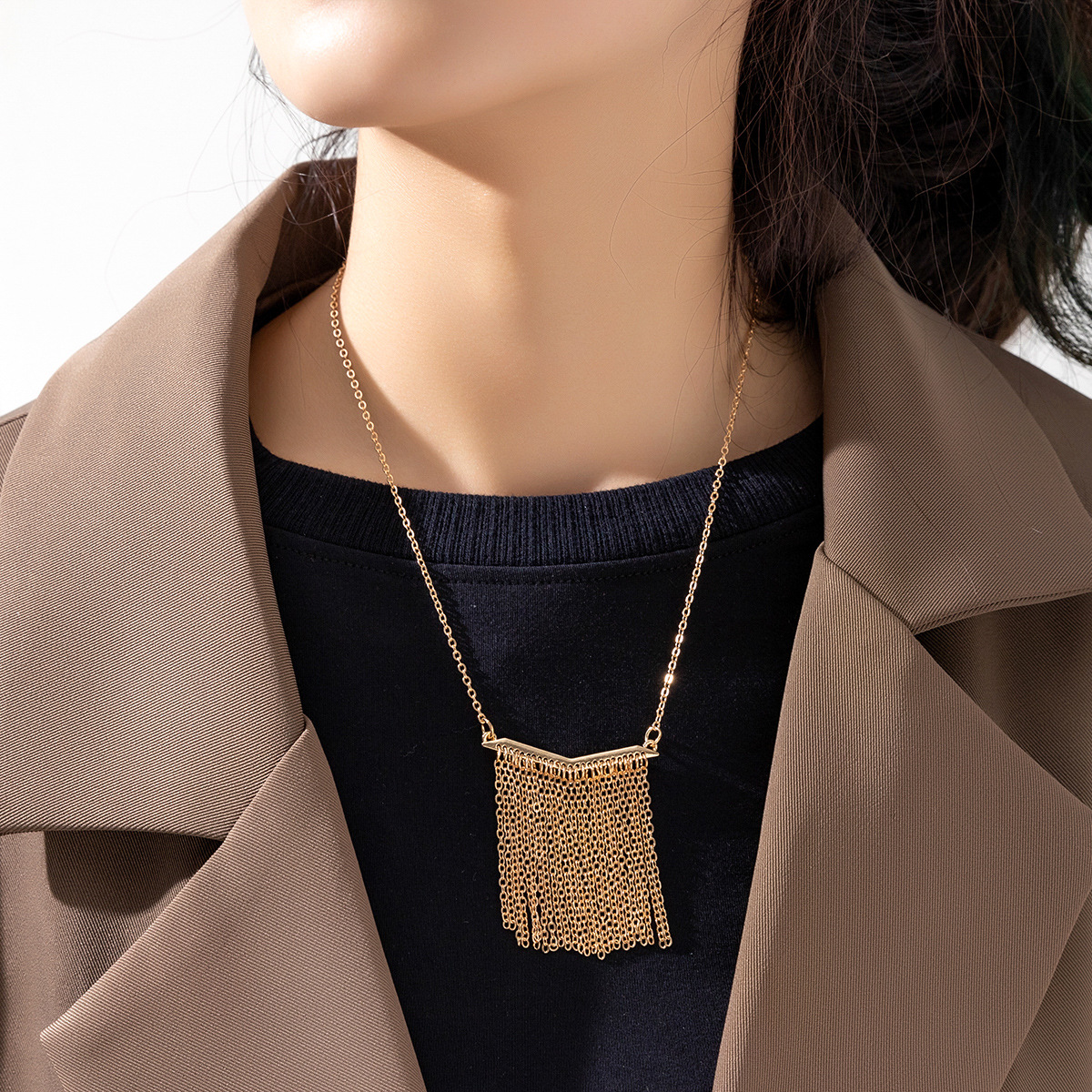 Insスタイルオリジナルデザインおしゃれ通勤シンプル精致チェーンフリンジストラップレディース高级感ネックレス