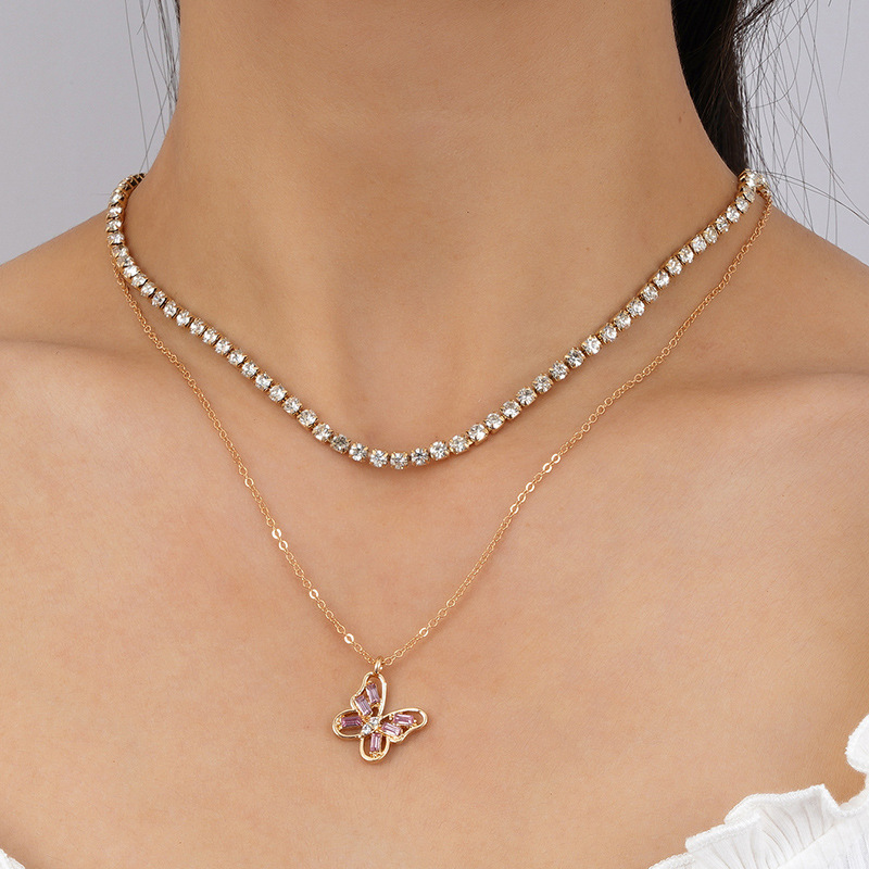 清新で甘いファッションシンプルな通勤スタイルにジルコンをはめ込んで蝶のペンダントを持っている女性のネックレスセット