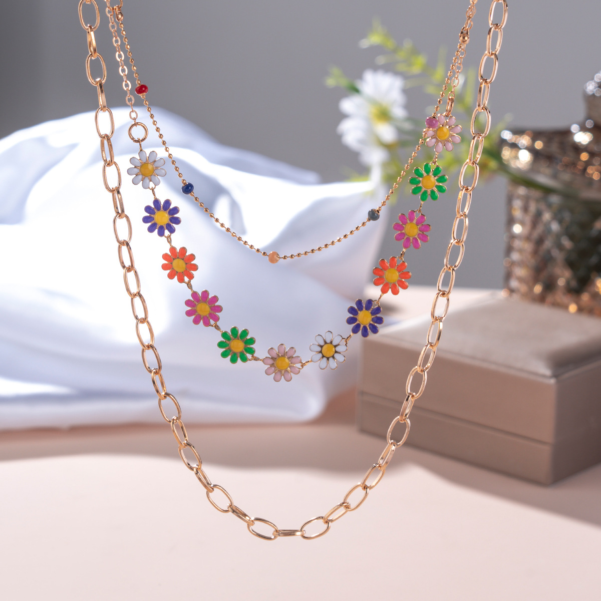 欧米のクロスボーダーの装飾品のレトロでシンプルな民族風のカラーの小さいデイジーの項は甘くて清新な金属のネックレスの女性を飾ります。
