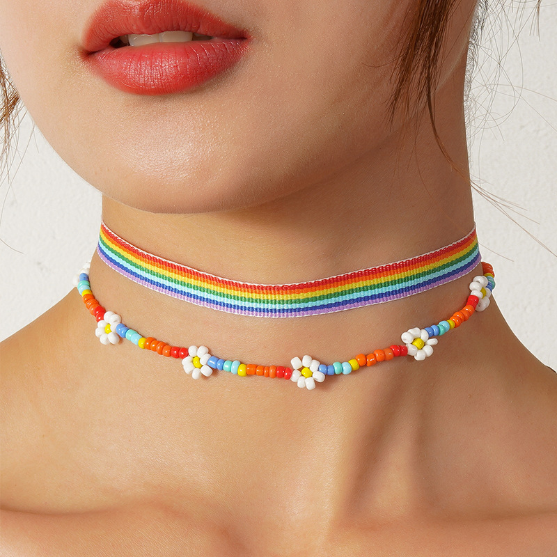 欧米の流行の金は国境を越えてアマゾンを越えて熱い販売の虹のシリーズの民族の風格の米の玉は女性の首のチェーンのネックレスを編みます。