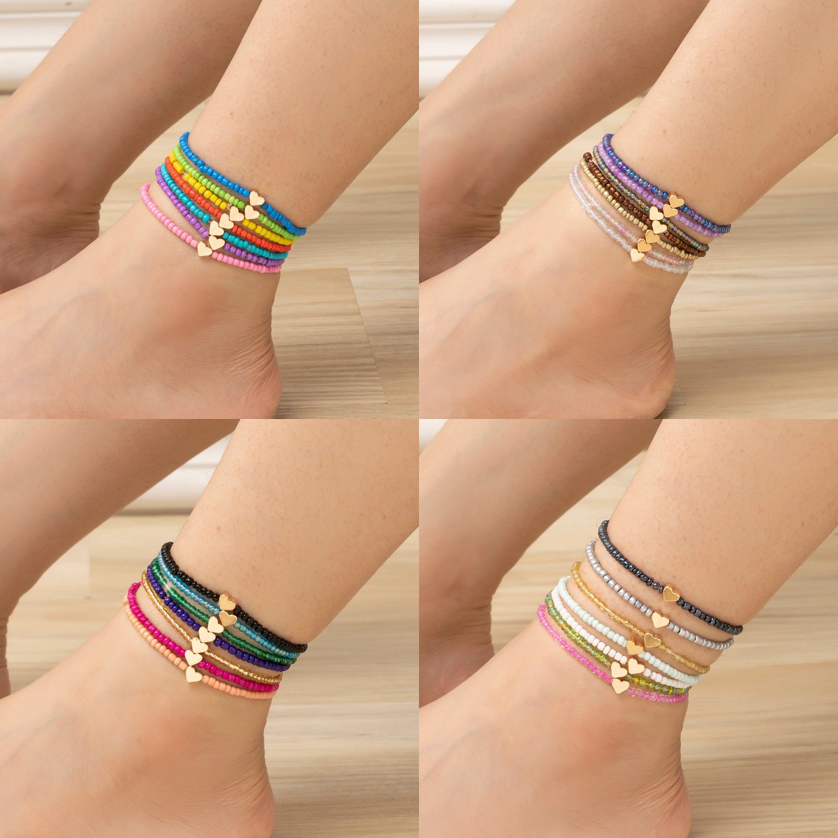 アマゾンクロスボーダー热い贩売ボヘミアン风ステンドグラスビーズフットチェーンハートペンダントレディース足饰り
