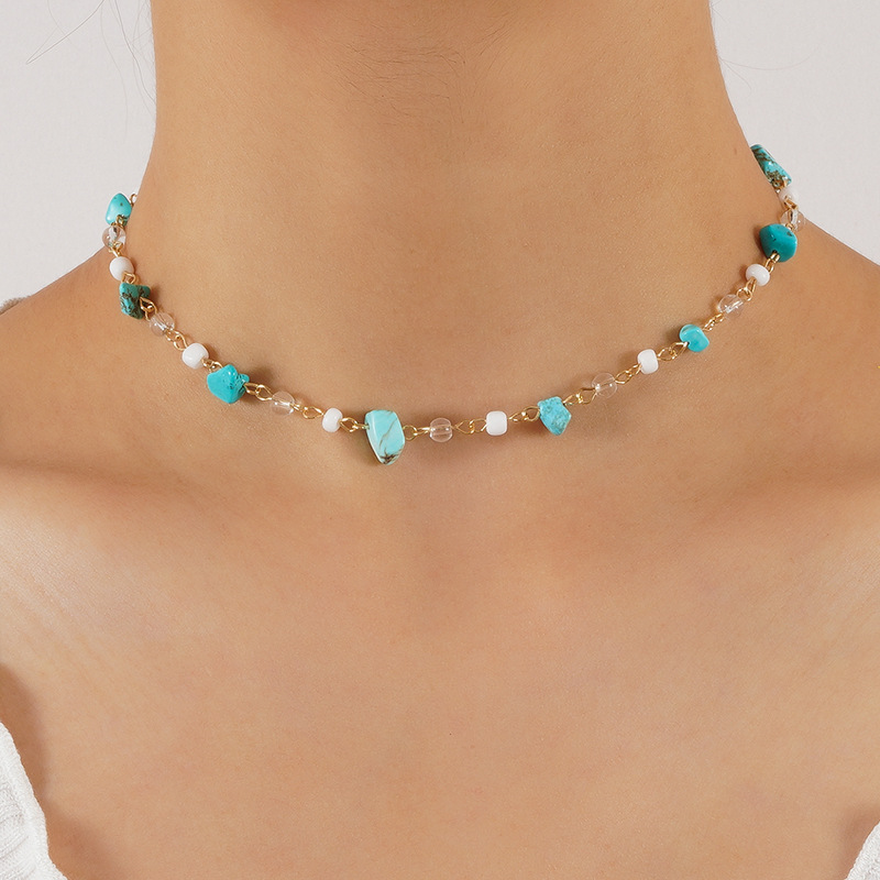 ファッションシンプル通insスタイル松石グリーン砂利白砂利透明白水晶レディースネックレス