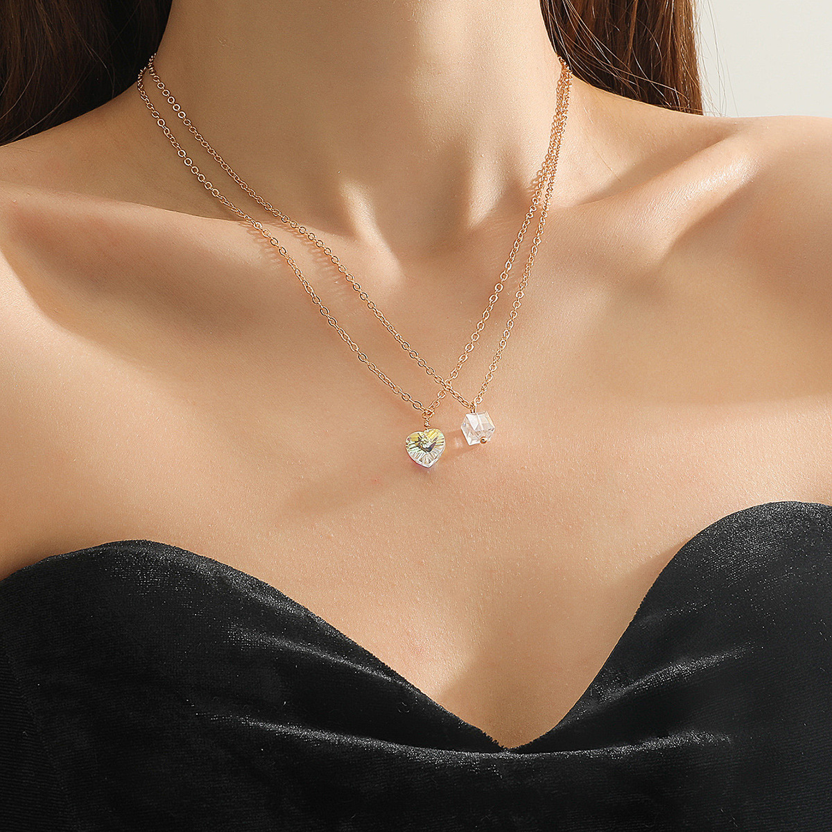 国境を越えた欧米の新しいネックレスは洗練されたシンプルなカラージルコンがきらきらしたハート型の女性ネックレスセットである