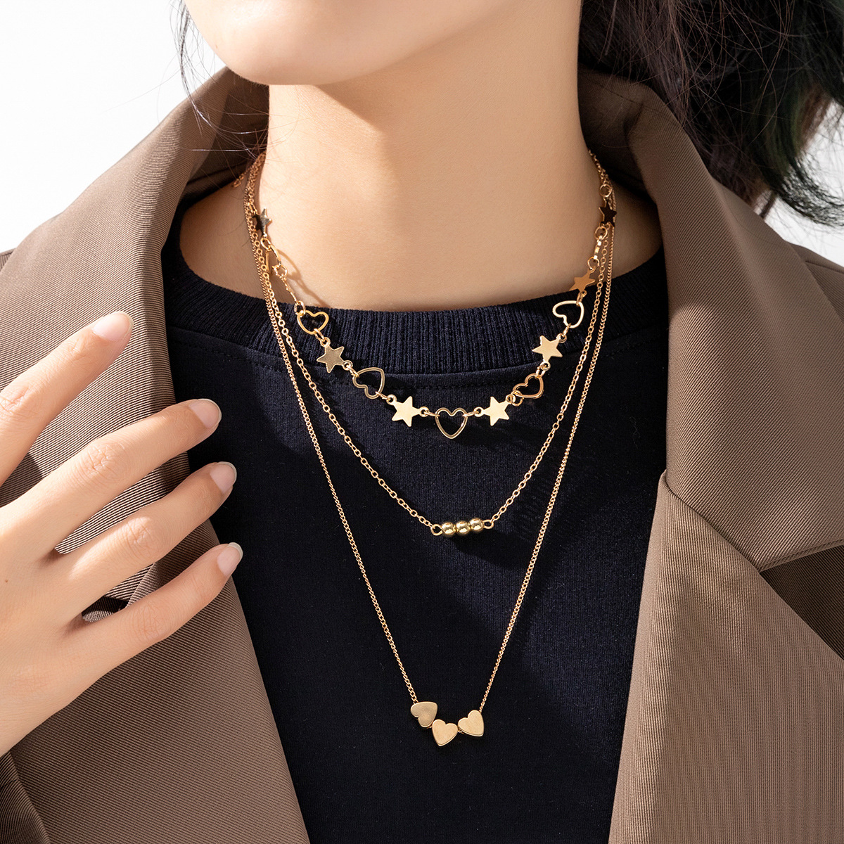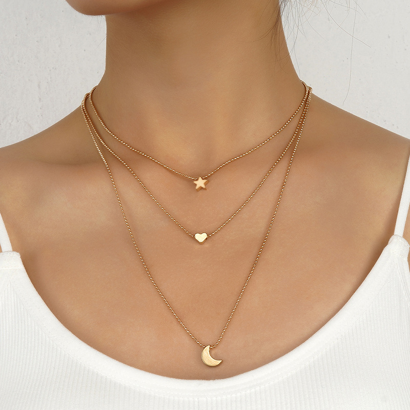 国境を越えて人気のある洗練されたチェーン愛星五角星月珠鎖シンプルな気質女性ネックレスセット