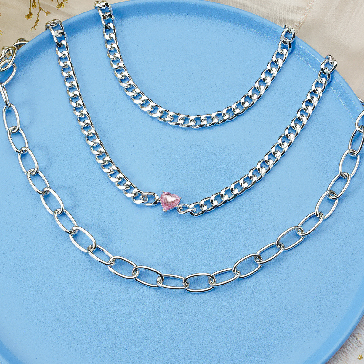 国境を越えた新しいシンプルなファッションネックレスピンクの愛は環境保護亜鉛合金の誇張した太い鎖の女性をはめ込んだ