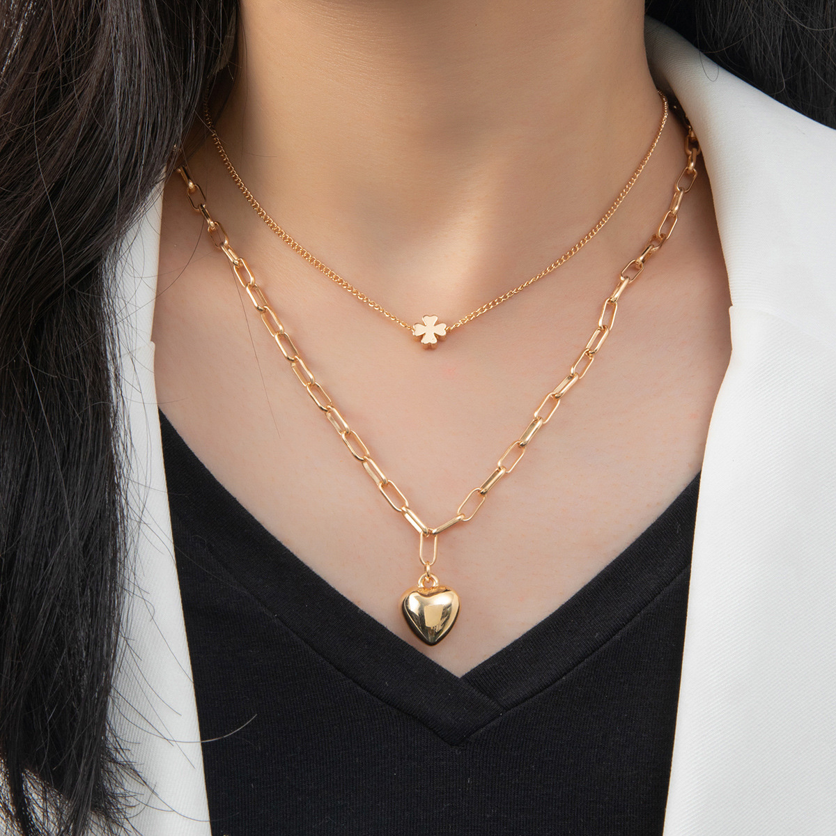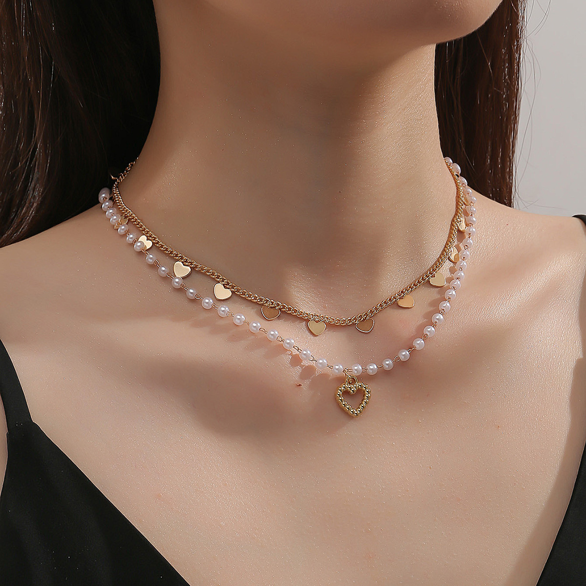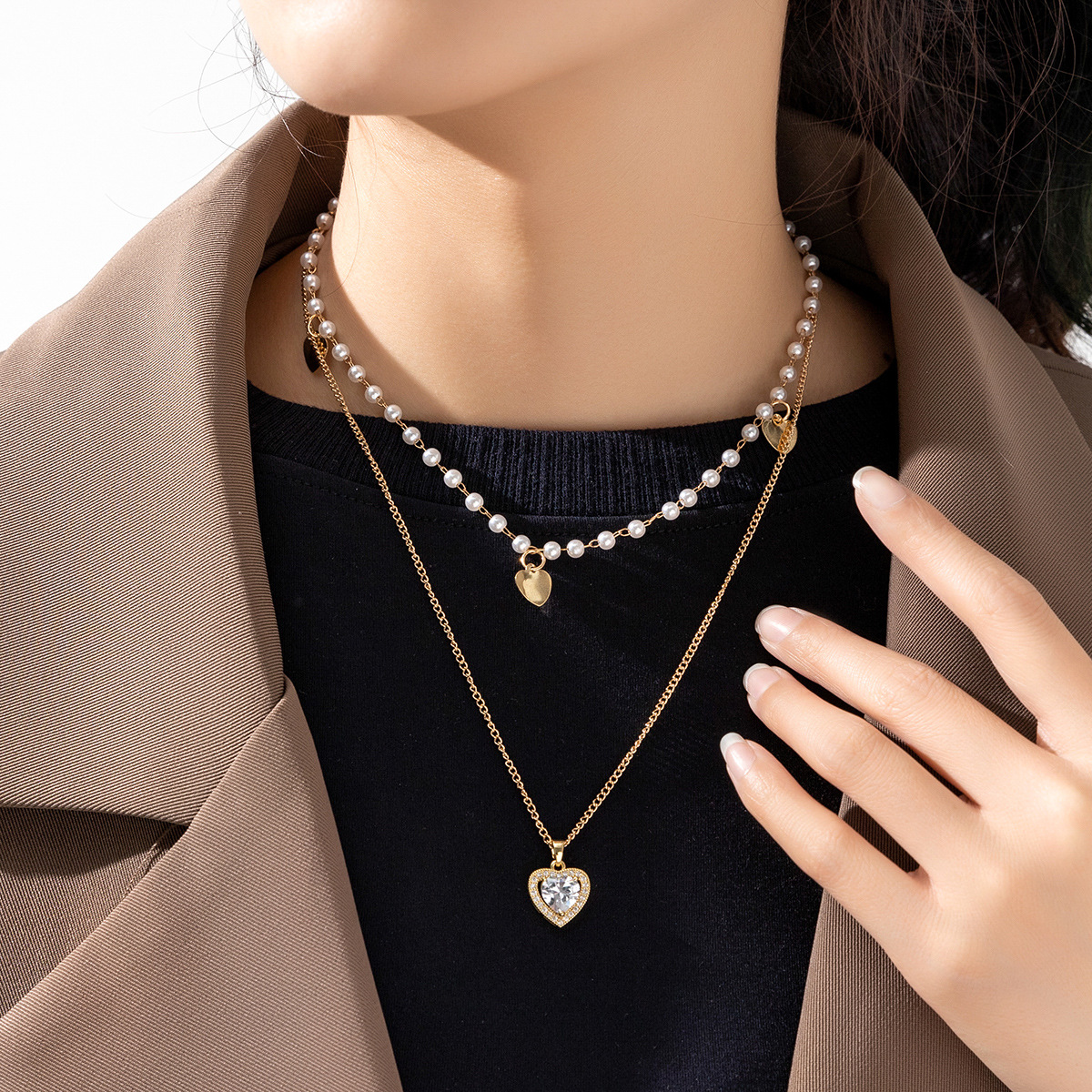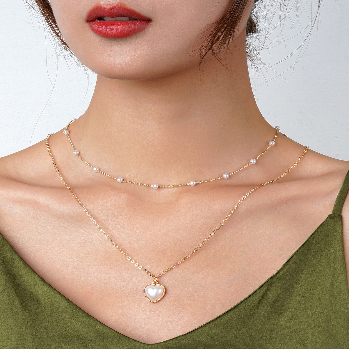 アマゾンの新しい環境保護亜鉛合金愛ペンダントチェーンに愛真珠チェーンをはめ込んだ女性ネックレス多層