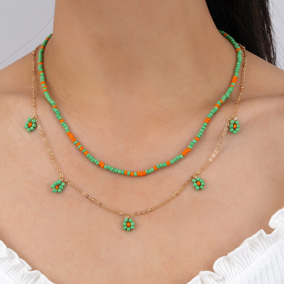 クロスボーダー民族風米珠ネックレスリゾート風森系花レトロファッション小花ビーズチェーンレディース