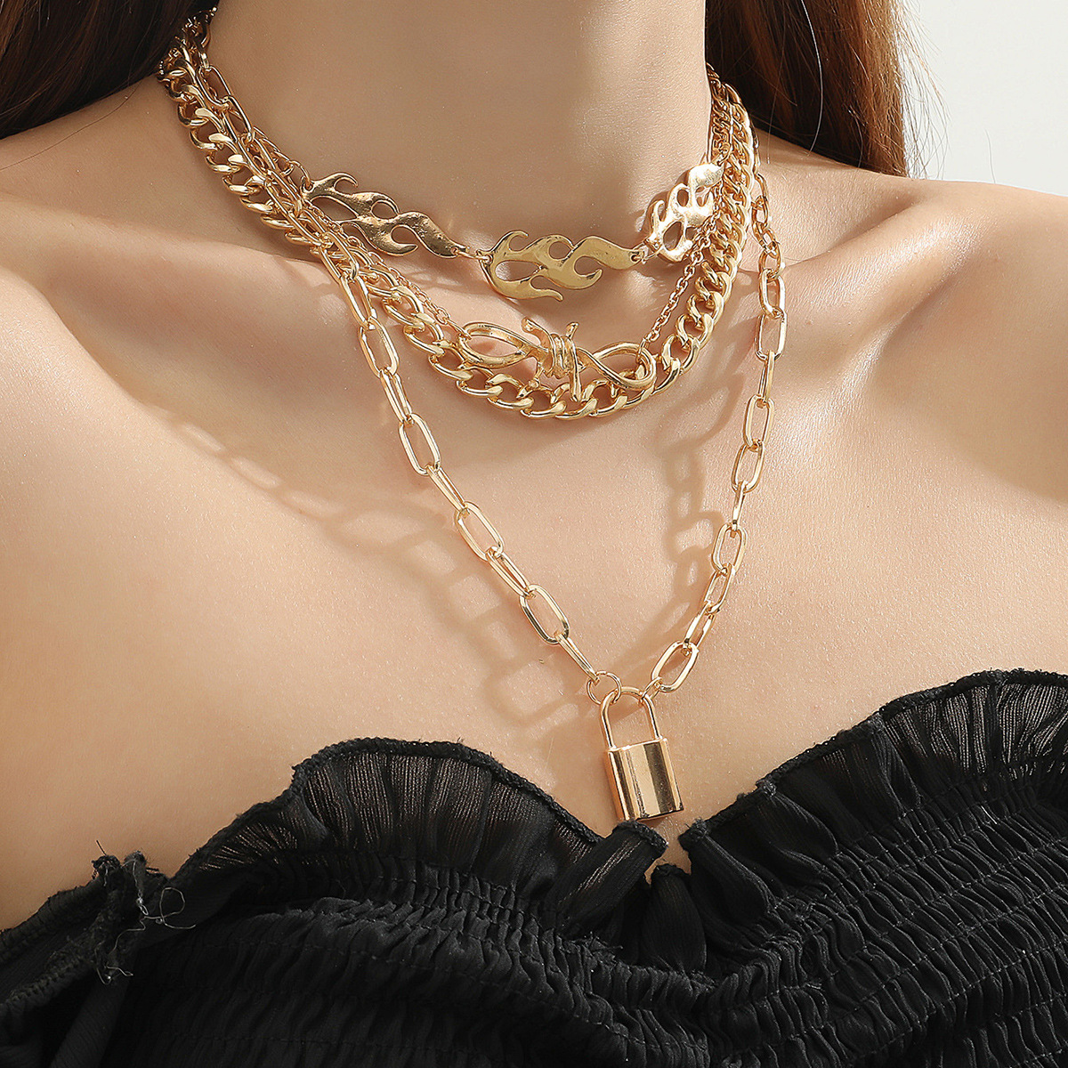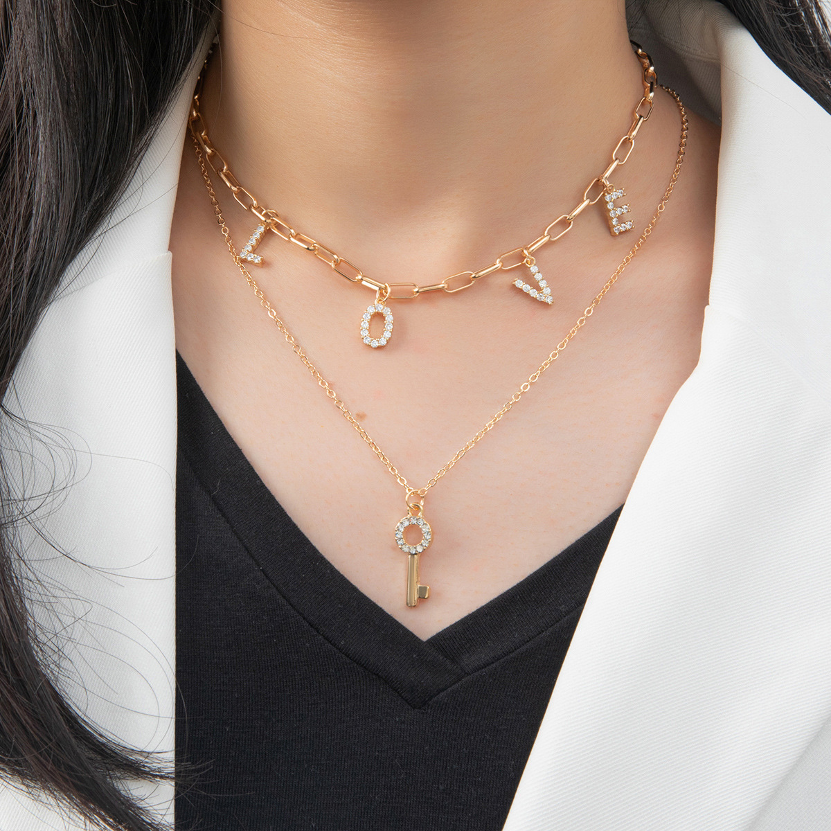 欧米の流行のアクセサリのファッションの簡単な販売のペンダントのキーはバレンタインデーの贈り物の女性の多層のネックレスをロックします。
