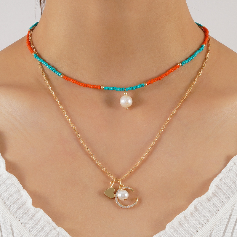 アマゾンの人気商品愛真珠ネックレス円形ペンダントガラス米珠ボヘミアン手作りチェーン