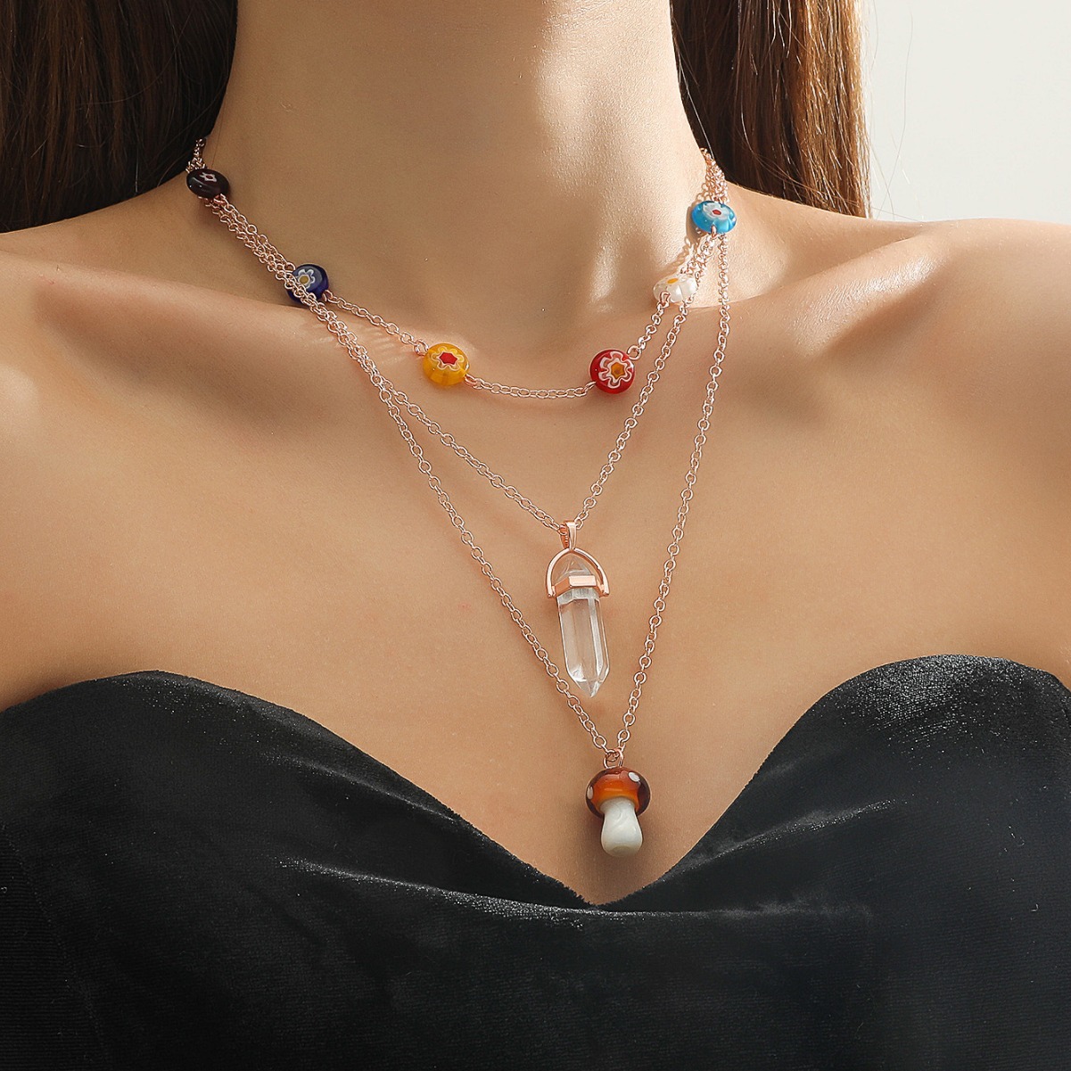 国境を越えた欧米のファッション百合レトロな女性のネックレスカラー瑠璃金ボヘミアン風キノコペンダント