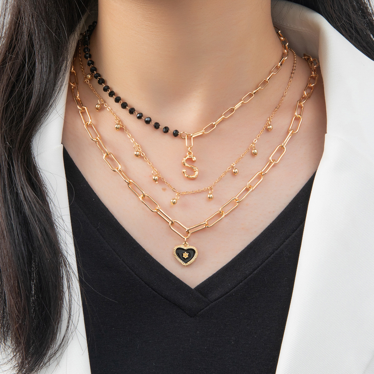 国境を越えた欧米のアマゾンの人気ネックレス神秘的な黒系ガラス水晶文字s愛ペンダントチェーン