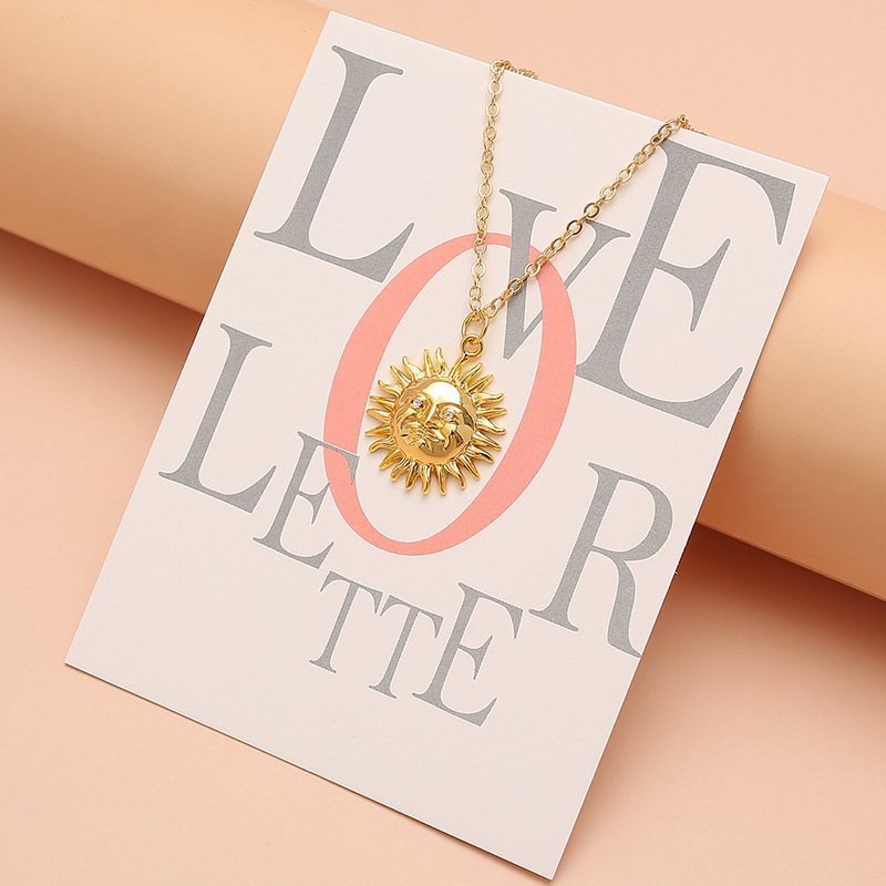 新型クロスボーダー欧米レトロ太陽ネックレス女性シンプル気質合金ペンダント鎖鎖アクセサリーメーカー直販