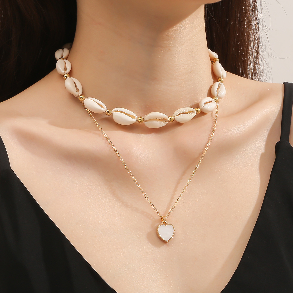 欧米の国境を越えたアクセサリー手作りビーズガラス米珠愛貝殻ファッションシンプルな女性ネックレスセット