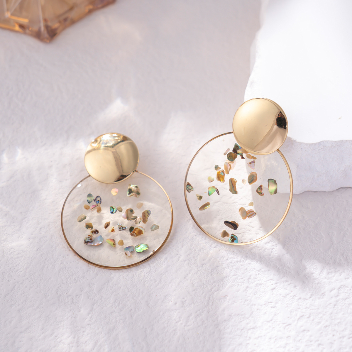欧米のクロスボーダーの新型レトロな貝殻の幾何学の円形の誇張するイヤリングのアイデアの透明なきわめて簡単なピアスの女性のイヤリング