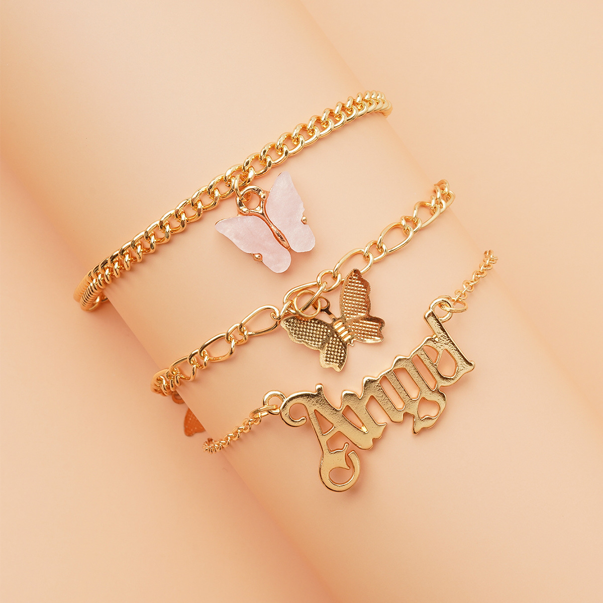 欧米のシンプルで甘いアクリル蝶のアルファベットアンジェラ天使ペンダント足飾り花蝶流蘇足鎖女