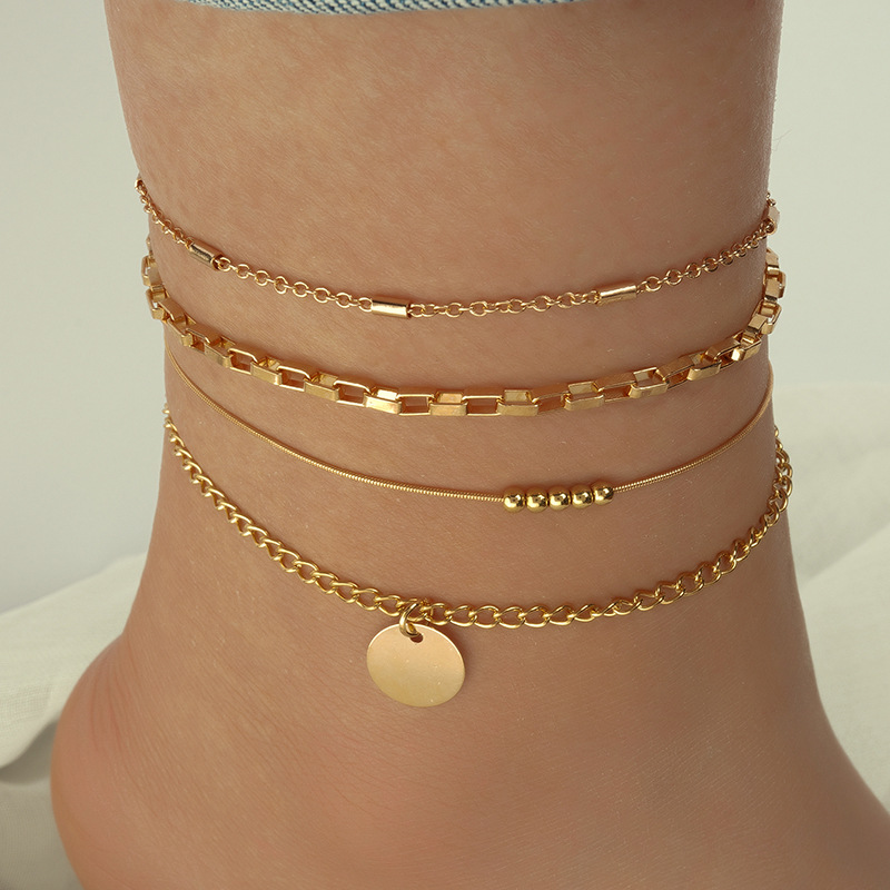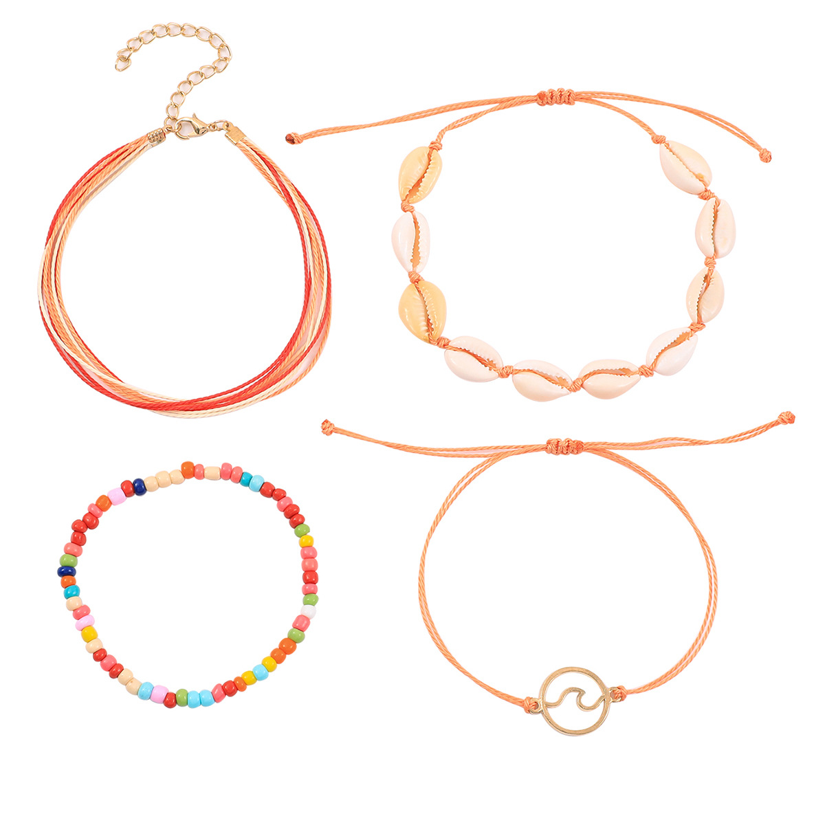 国境を越えた欧米の新型足飾りボヘミアン風貝殻カラービーズ編みロープ波ビーチ足鎖4点セット