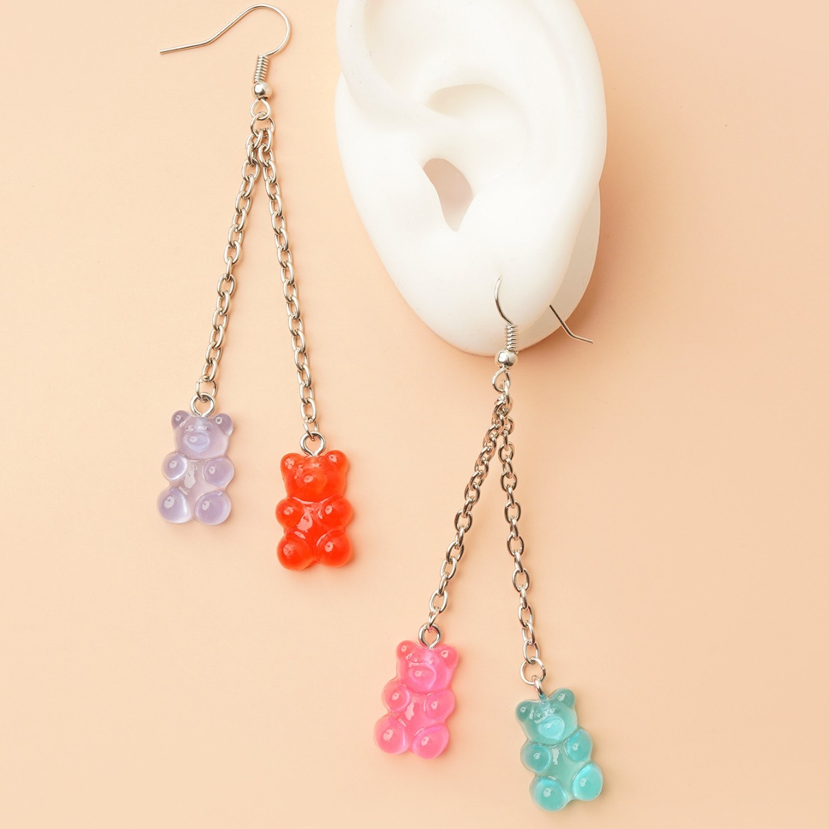 国境を越えた新しいキャンディー色のかわいいベアーのイヤリングが日韓ins風女性のイヤリング卸売りに落ちた