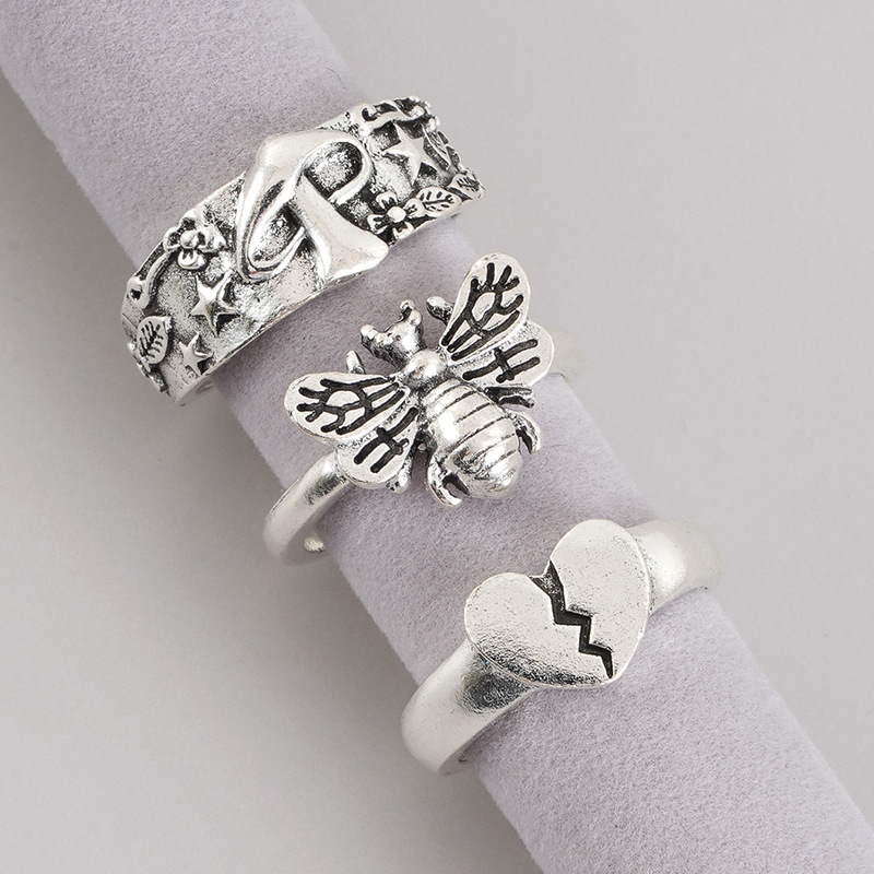 国境を越えたファッションアクセサリーのレトロなミツバチ合金指輪愛の女性アクセサリー卸売り3点セット