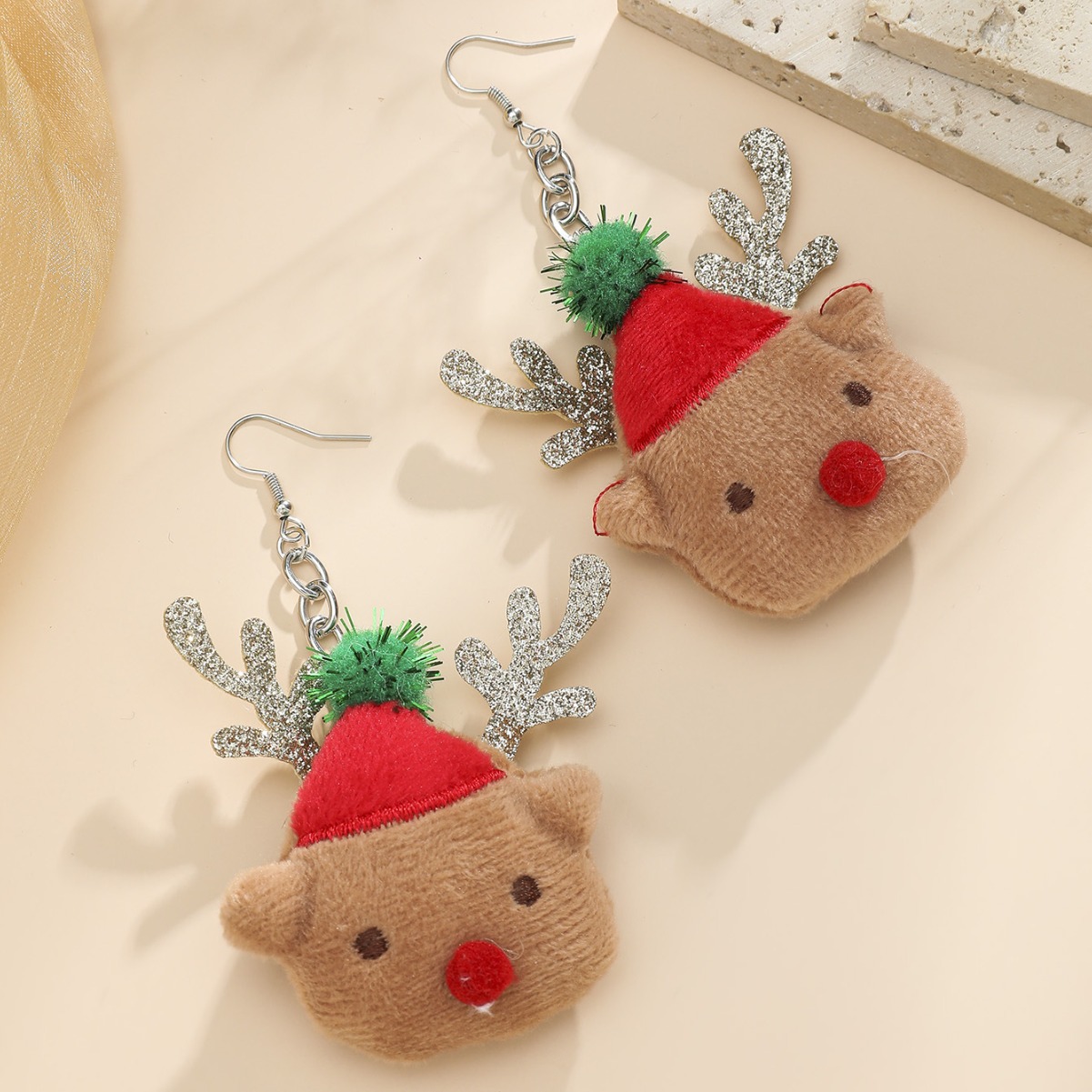 欧米のクリスマスの新型のかわいい甘いぬいぐるみのクリスマスのヘラジカのイヤリングの女性のイヤリングの装飾品のクリスマスの贈り物の卸売り