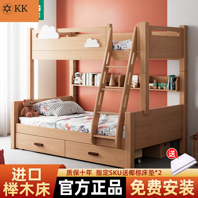 ブラザーズベッド 子供用ベッド ブナ無垢材 二段ベッド ハイローベッド 小型二段ベッド 取り外し可能な親子ベッド クリアランス