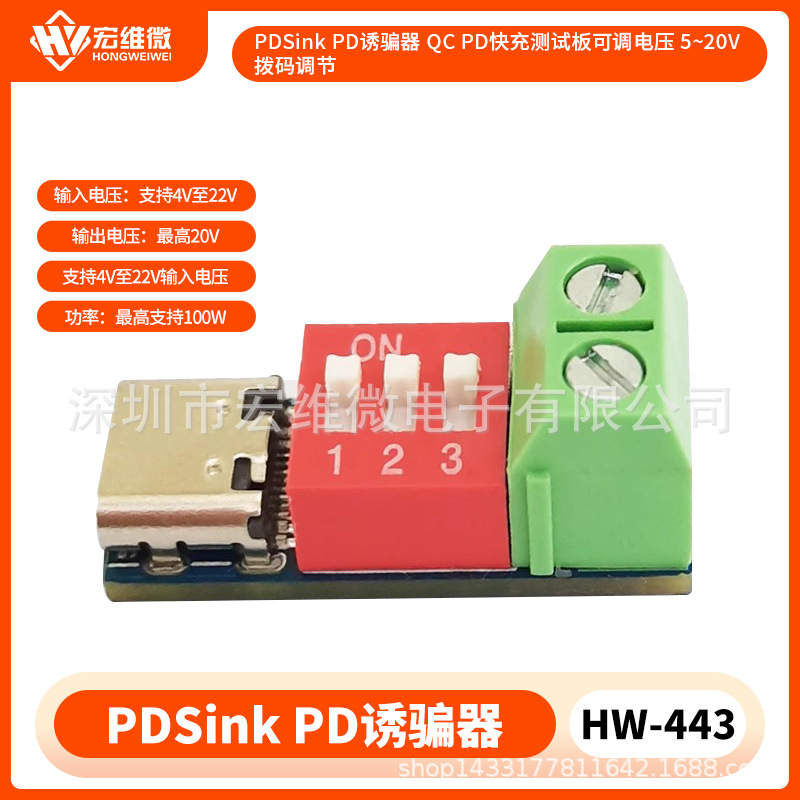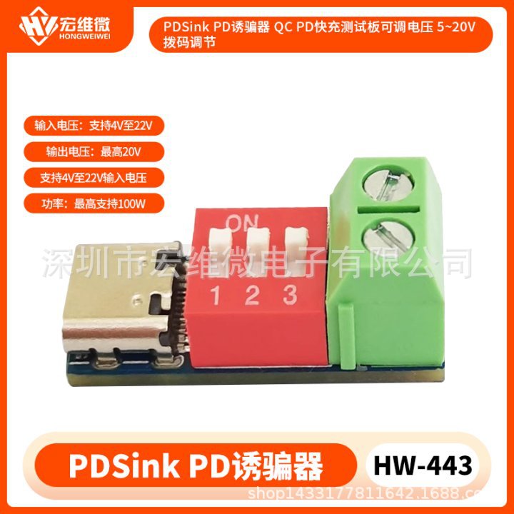 PDSink PD誘導器QC PD急速充電テストボード調整電圧5 ~ 20Vダイヤル調整