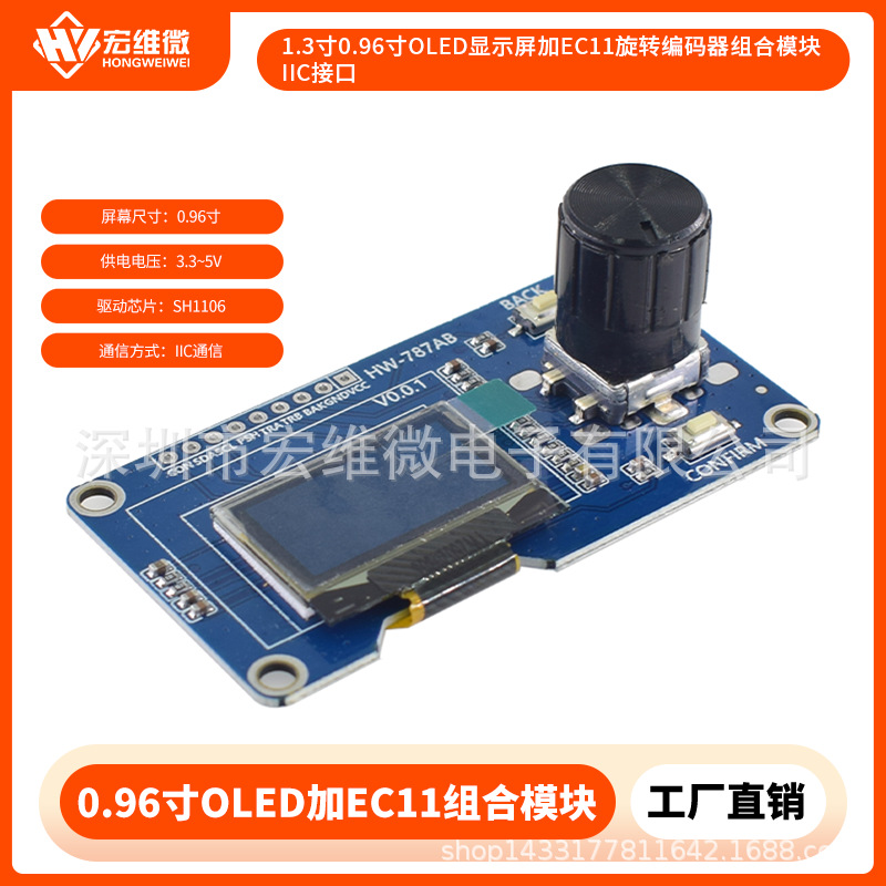 1.3inch 0.96inch OLED ディスプレイと EC11 ロータリー エンコーダ コンビネーション モジュール IIC インターフェイス