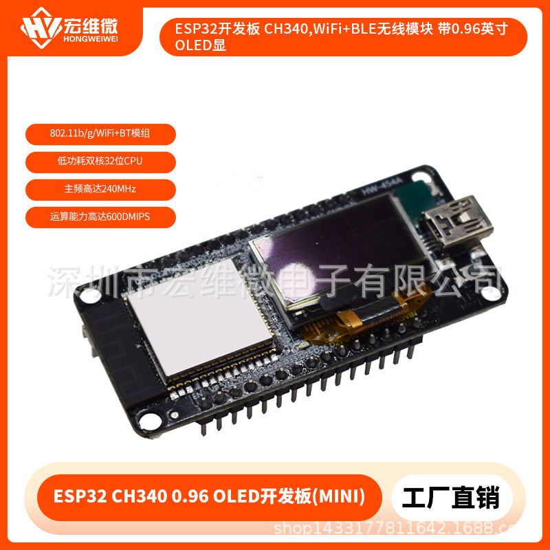 ESP32開発ボードCH340、WiFi BLE無線モジュールは96インチOLEDディスプレイ付き