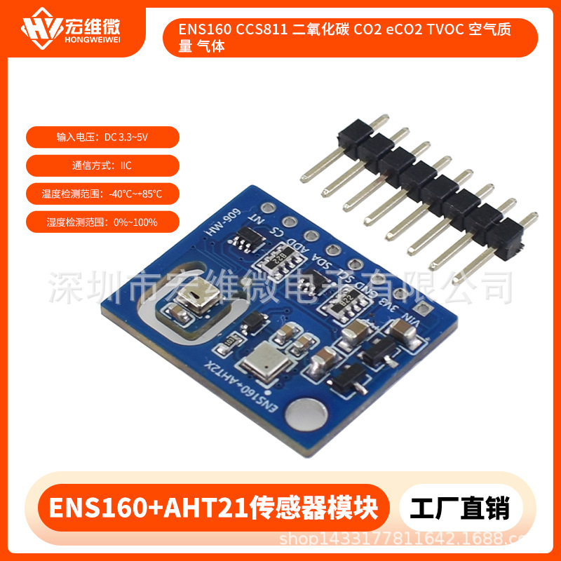 ENS160+AHT21 二酸化炭素 CO2 eCO2 TVOC 空気質および温度および湿度センシング