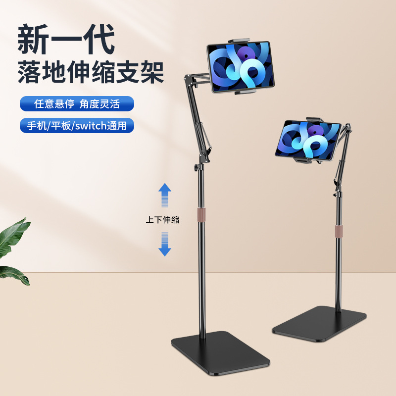 怠け者の携帯電話スタンドの床置き式の写真を撮って、ベッドの上の伸縮アームにipadのタブレットサポートを適用します。