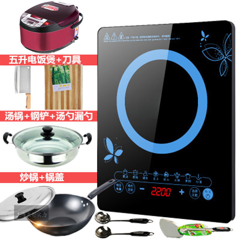 電磁調理器家庭用タッチブラッククリスタル電気調理器炊飯器鍋包丁まな板セット家族