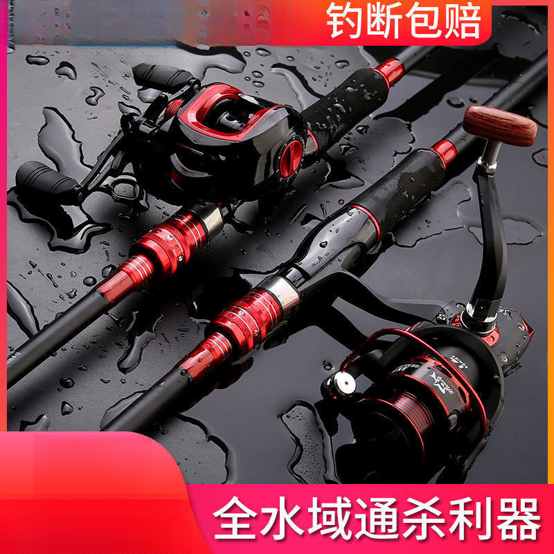 Dawa Mingpin カーボンルアーロッドセット ウォータードロップホイール ガンハンドル 釣竿 ストレートハンドル シーロッド 遠投 ブラックフィッシュマウス