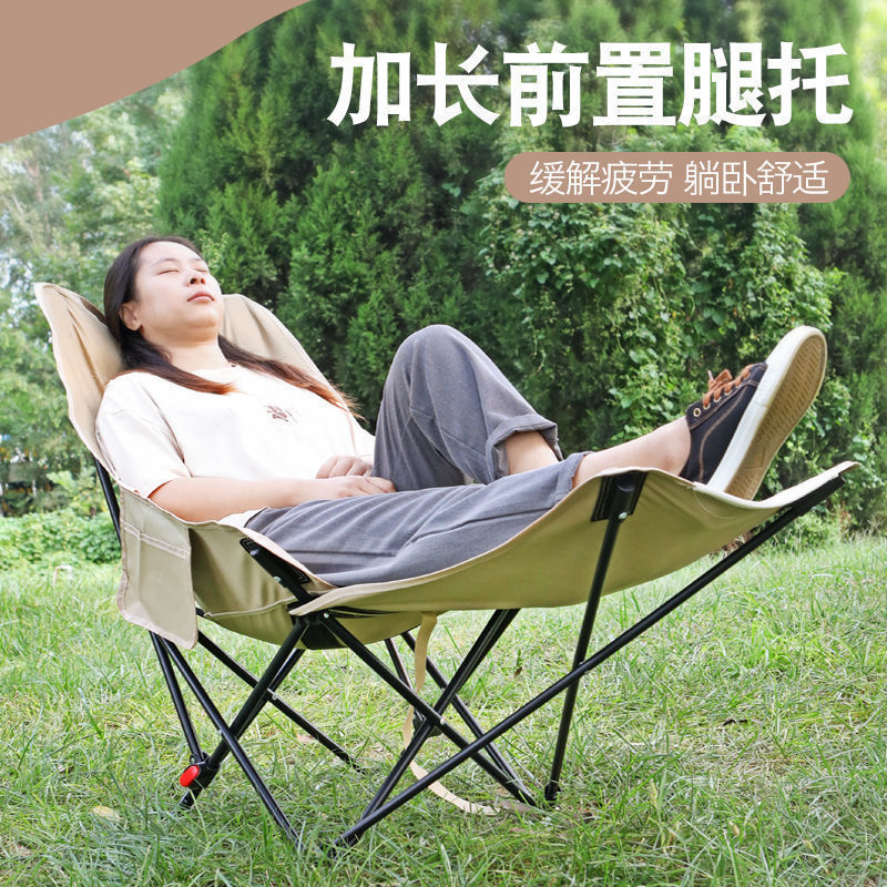 户外折叠椅月亮椅三挡调节带脚托坐躺两用户外便携高承重野餐椅