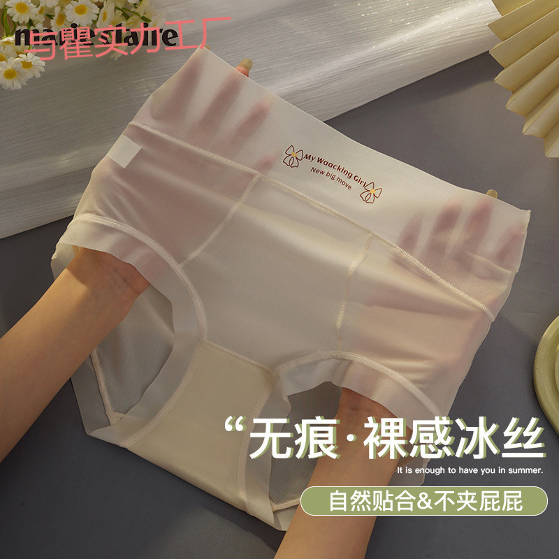 下着女性のアイスシルクシームレスハイウエスト夏速乾性超薄型新しい通気性パンツ