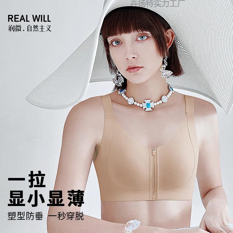 薄手の春夏の大きな胸が小さく見えるフロントジッパー下着ブラジャー、着脱が簡単なフロントボタン下着女性用ヨーロッパスタイル