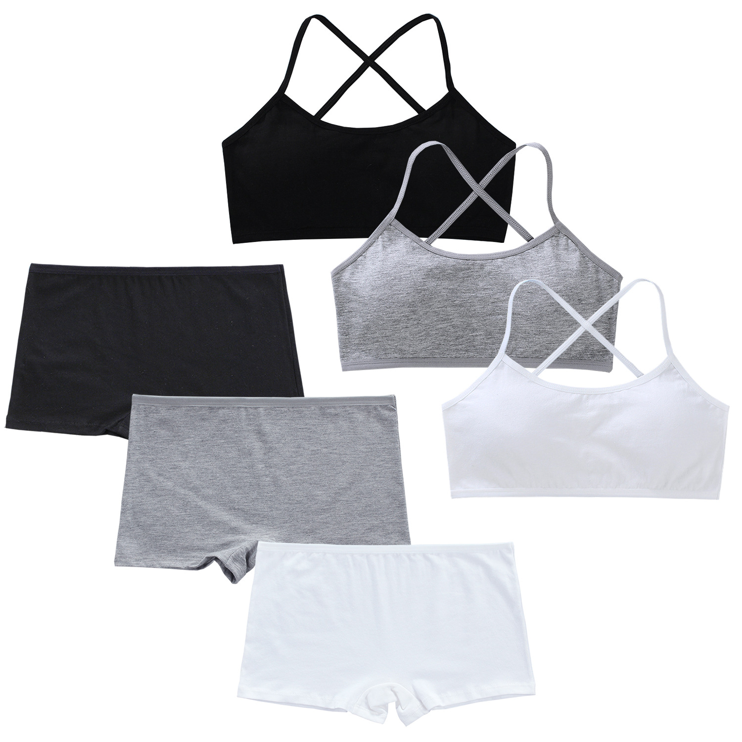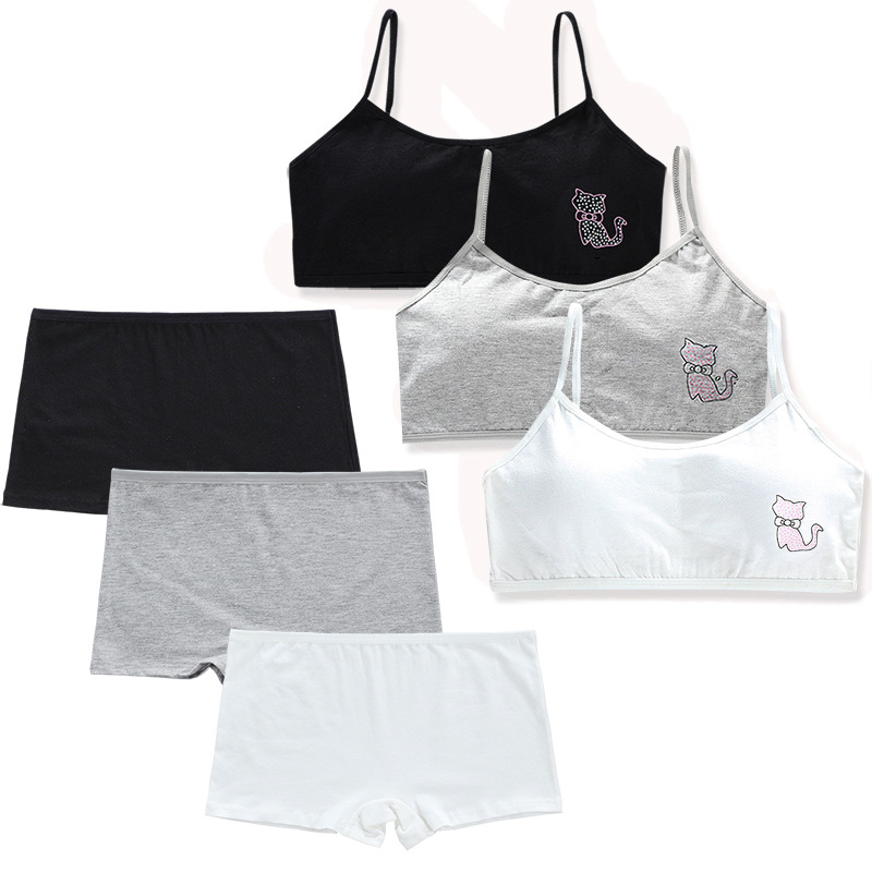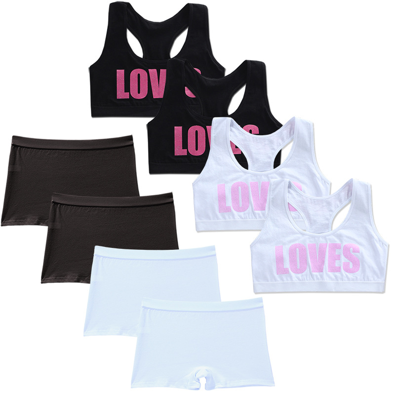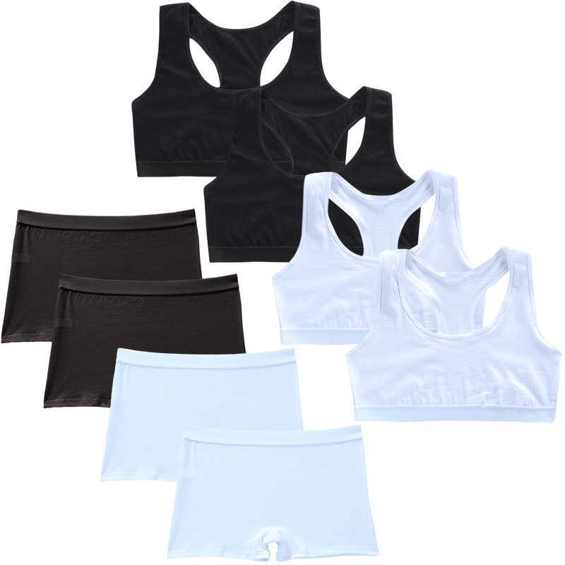 少女ブラジャーセット発育期小ベスト美背ストラップ白黒綿10-14歳胸9中学生クロスボーダー