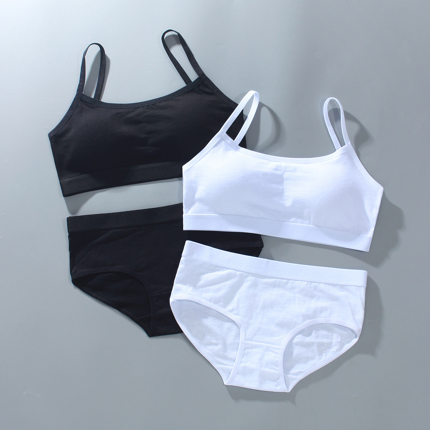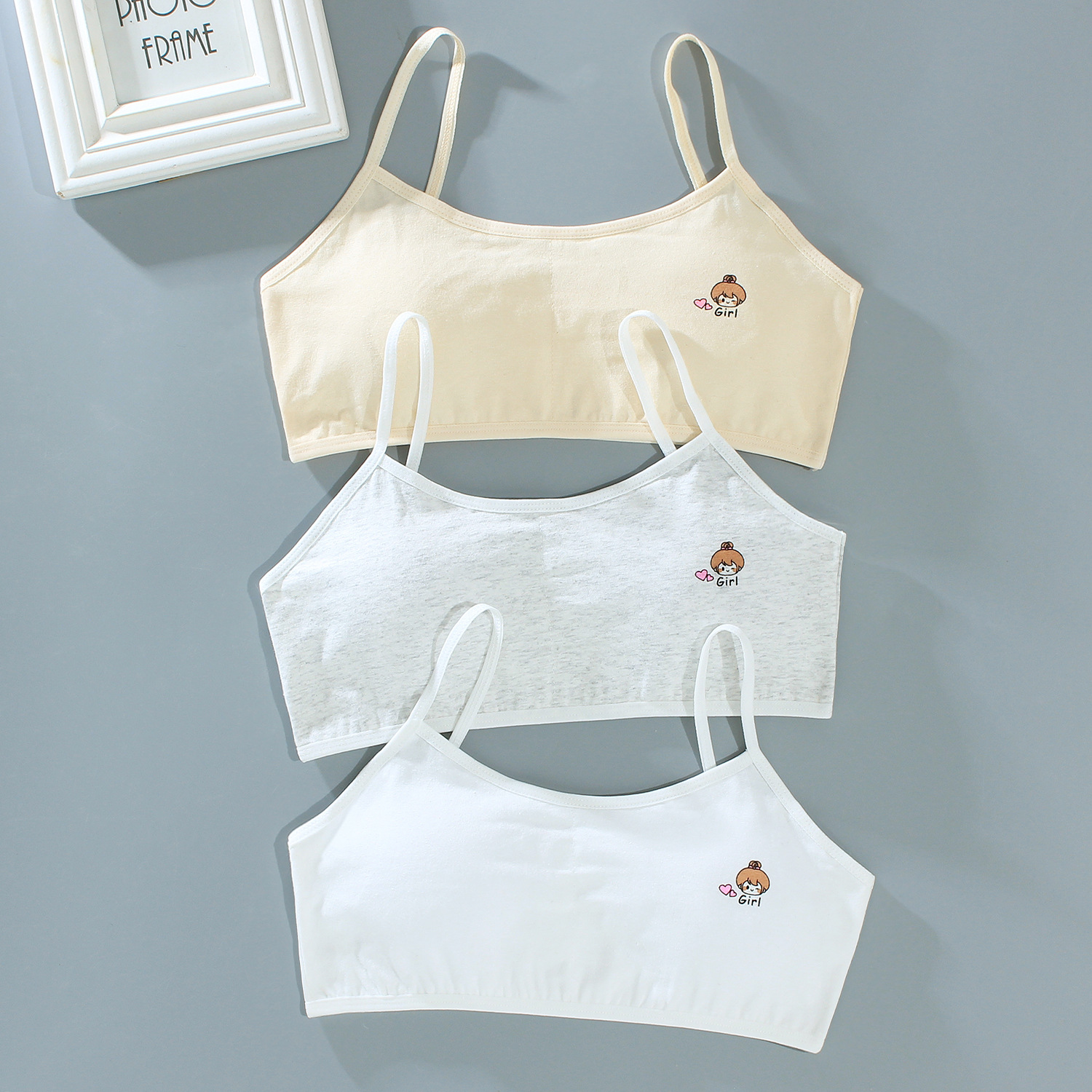 【4点セット】子供用ベストのストラップの下着の二重には、綿の少女の胸の発育期の学生がいます。