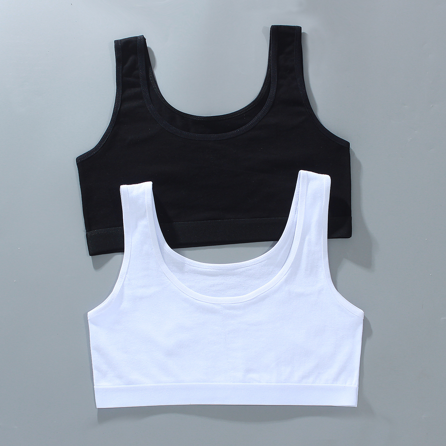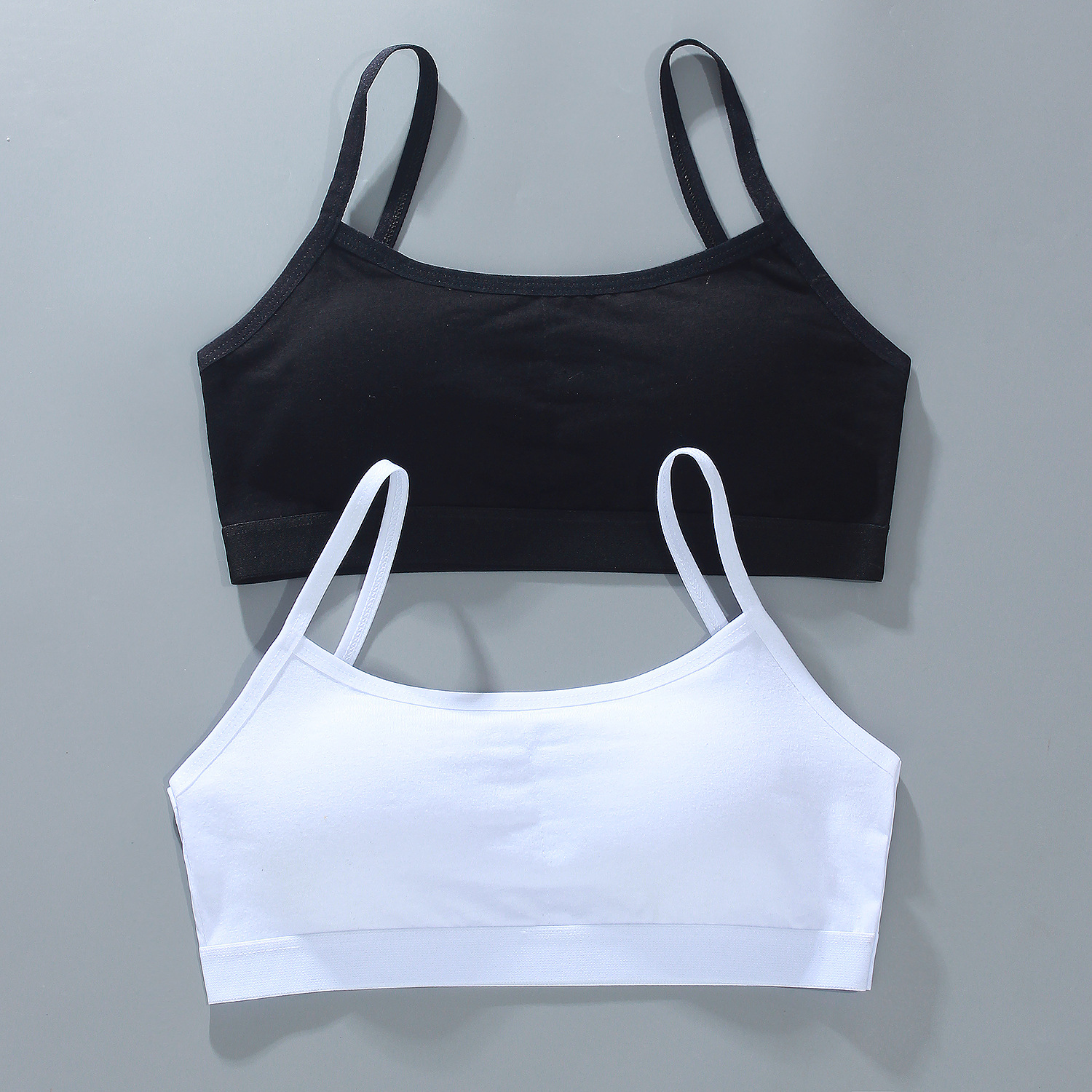 女の子のベストの黒い白いストラップの下着の純色の綿の発育期の胸の夏の8-12歳の学生のブラジャーの子供