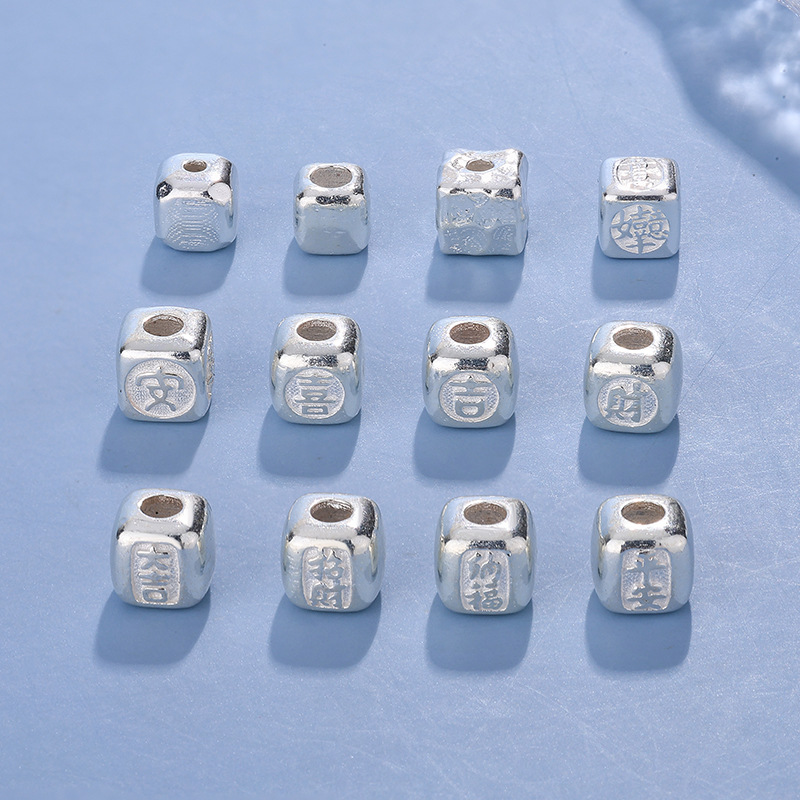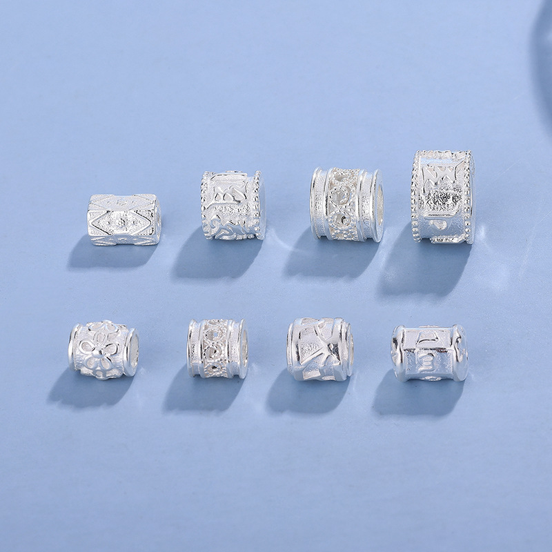 999 純銀 6 文字マントラ DIY ビーズ編組ロープブレスレットネックレスルースビーズアクセサリー材料ビーズスペーサー卸売