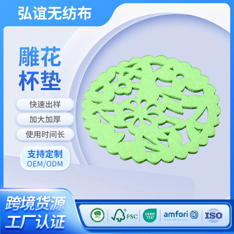 厚い不織布彫刻コースターカラー円形透かし彫り花型フェルトコースター