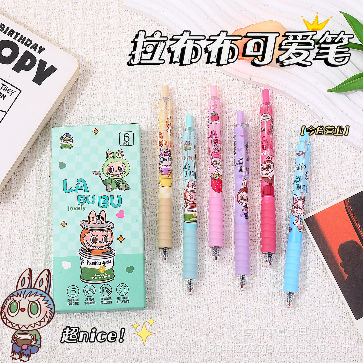 可爱吉伊卡わぁブラシ问题ペンST速干黒ジャンプペン高颜値学生押し中性ペンマイナスペン
