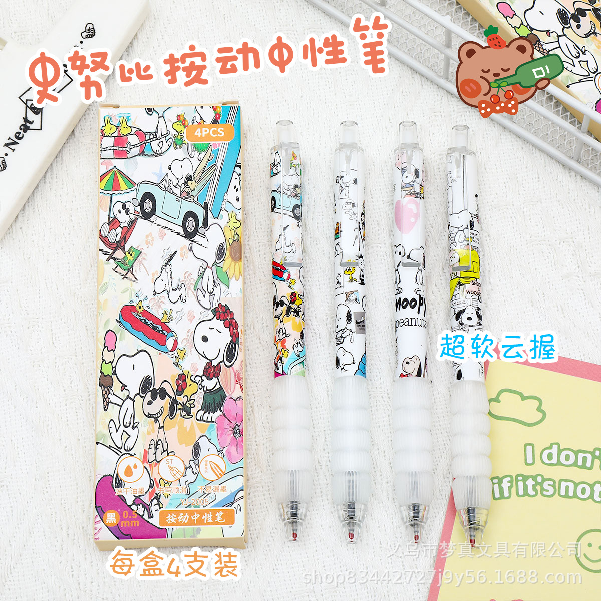 超かわいいスヌーピーブラシペン、高見えで楽しいプレスゲルペンST速乾性黒負担軽減ペン漫画ペン