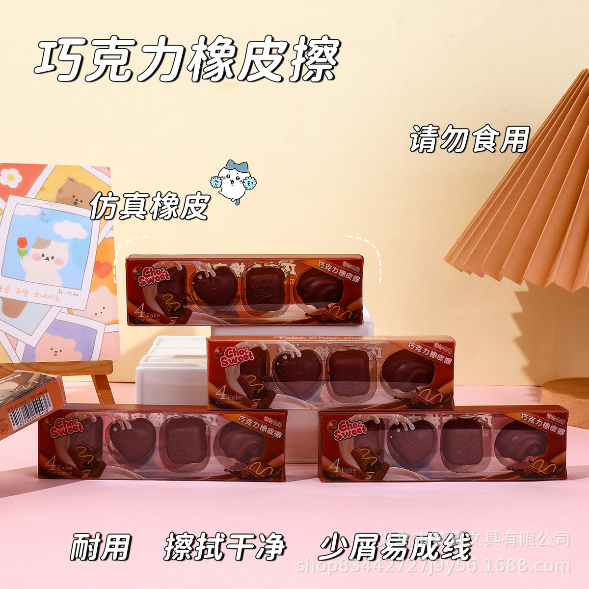 外国貿易の見栄えの良いクリエイティブな形の消しゴム漫画かわいいリアルなチョコレート消しゴムセットは痕跡を残さず消去します